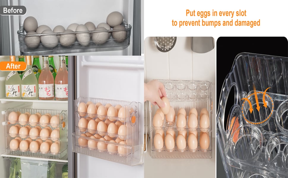 🥚Multi-layer design: The egg organizer is designed with three layers, each layer can hold multiple eggs, making full use of the storage space, easy to store and access, saving the hassle when storing eggs.