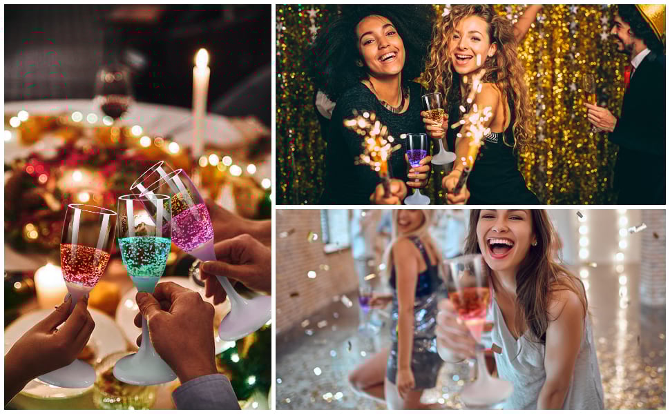 LED champagne flutes are perfect for all kinds of parties like weddings, festival celebrations, birthday party and nighttime pool parties. Light up champagne and make the party memorable and delightful. It also can be a perfect gift for your friends and family!