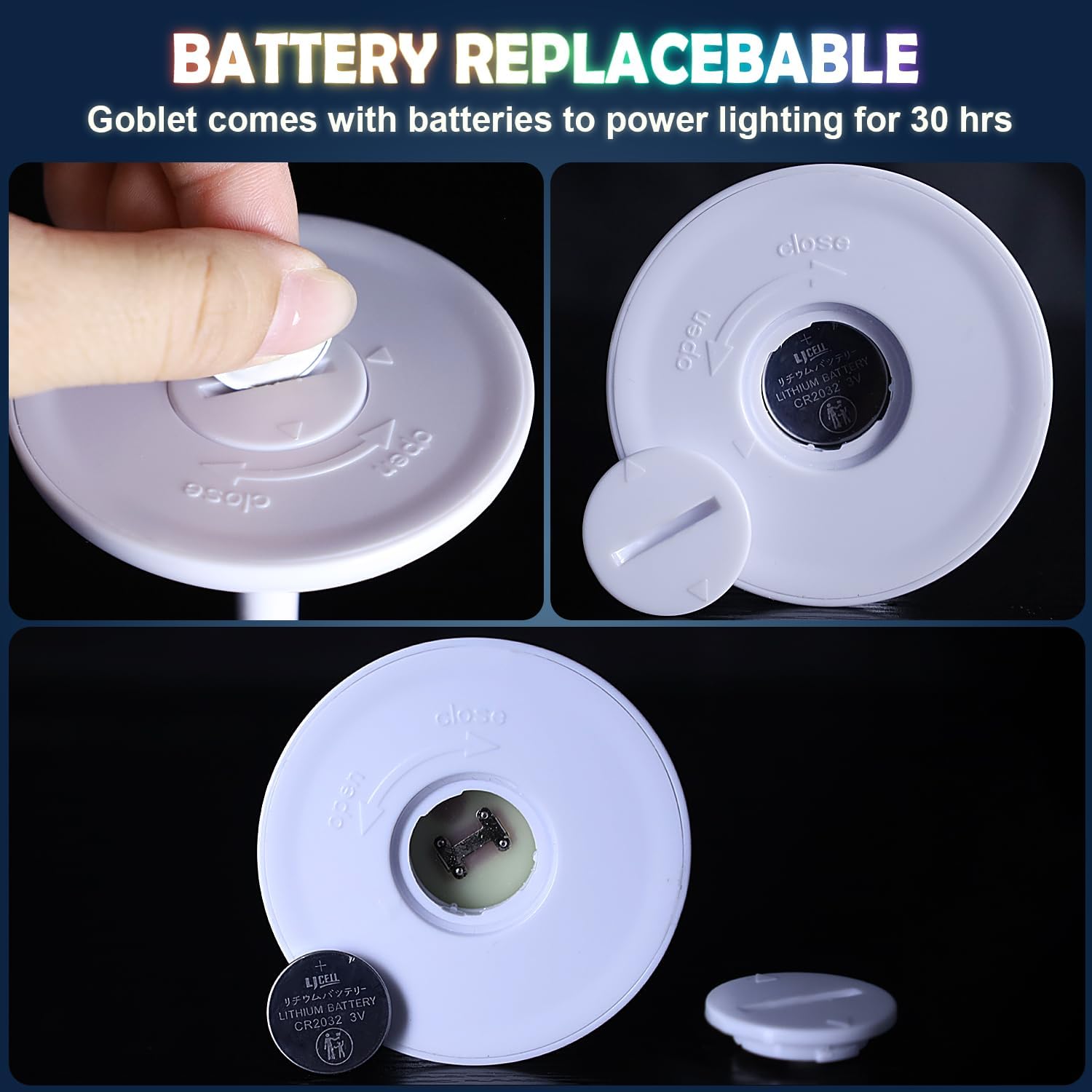 【The Cups Are Durable and Reusable】-Made of Food-grade ps. LED wine glasses with stem are safe for kids and a must have around pools, patios and decks. They're pretty thick and sturdy enough, and with IP 67 waterproof you could easily wash and reuse