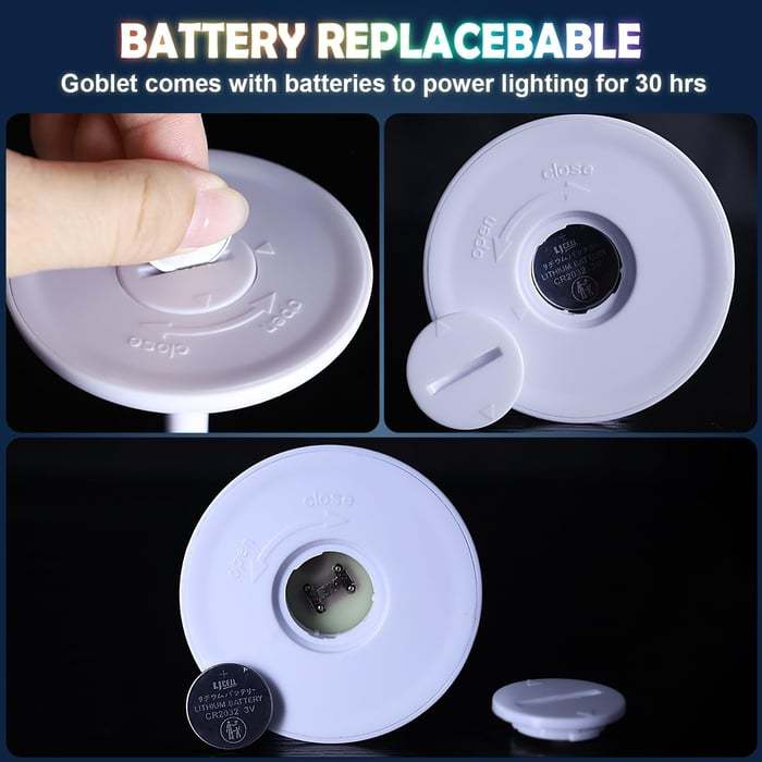 【 Stay Lit for Over 30 Hours & Battery Replaceable】- The cups are sturdy and the light stayed lit for over 30 hours. The light lasted longer than the need for the cups. The battery is replaceable. Use common CR2032 button batteries, so easy to replace
