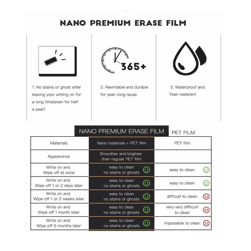 【Erase with Ease】 : The specialized eraser is designedfor quick, effective cleaning without leaving markerresidue, maintaining a clean writing surface.