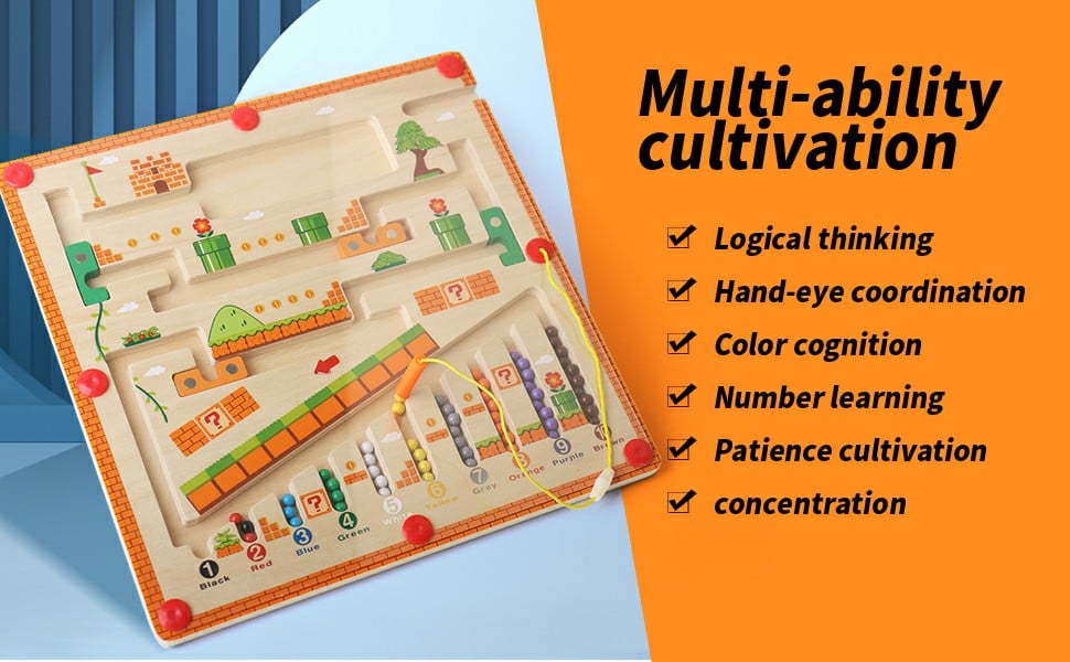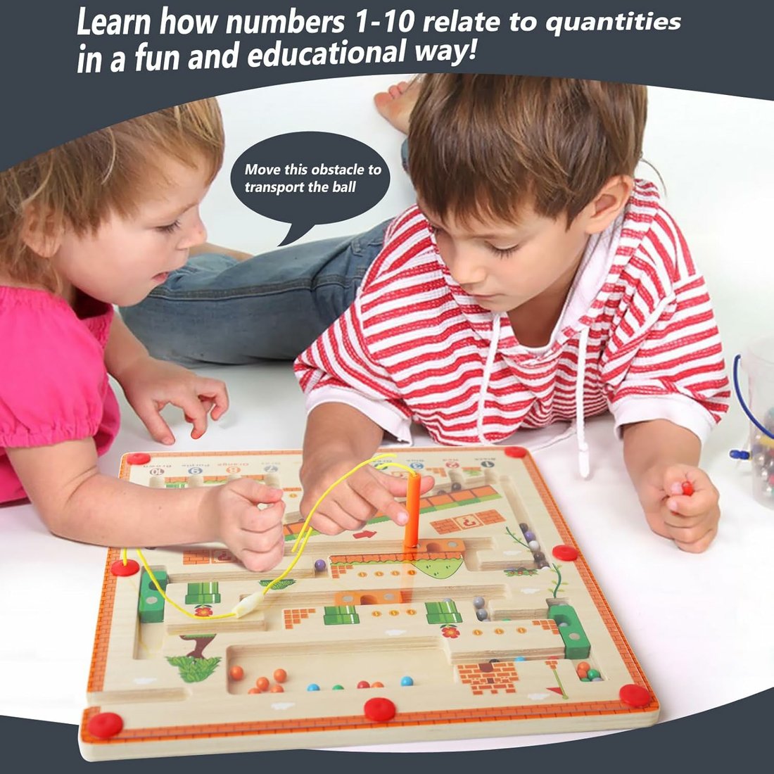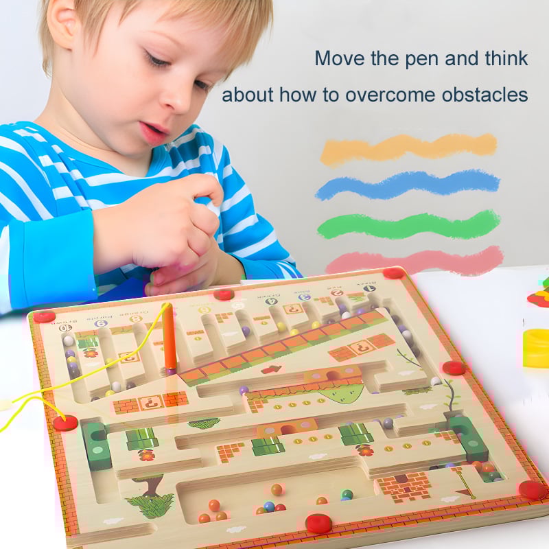 Montessori-inspired learning:-this toy is based on Montessori pedagogy and combines labyrinth design with vibrant colours. It playfully teaches colors, counting and using magnets for moving objects. Suitable for children aged 3 to 7 years