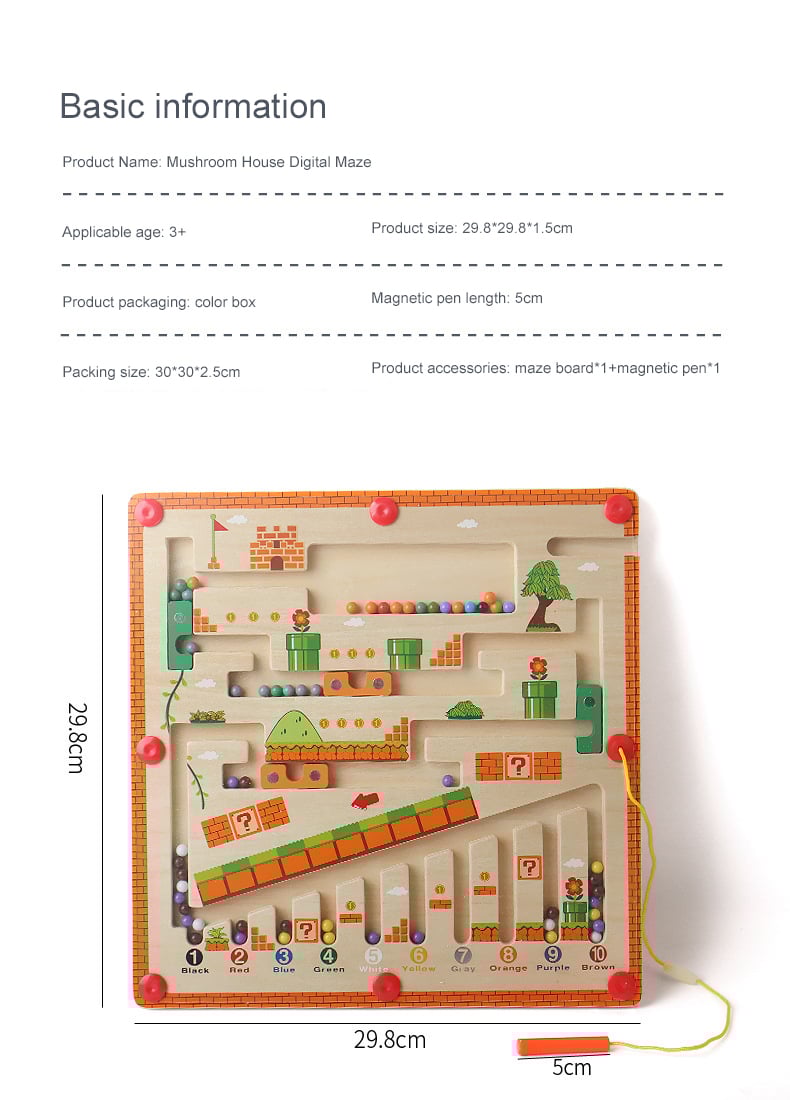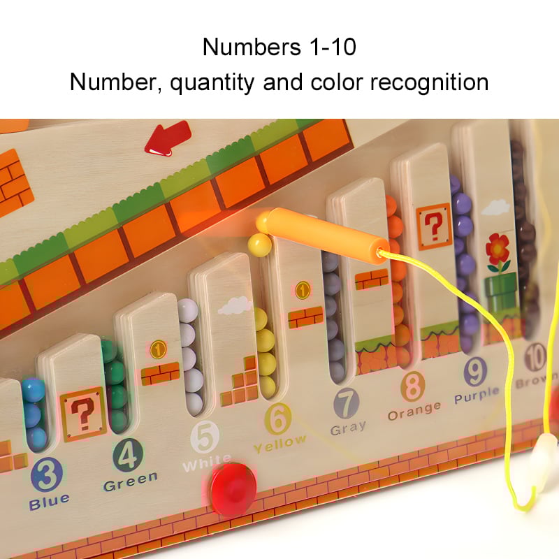 Versatile funΒ - This magnetic wood labyrinth has 10 areas with different colours and numbers. Children use a magnetic marker to move matching colorful balls in the areas to promote their knowledge about colors and numbers. You can also move the beads from the bottom up to increase the fun of playing.