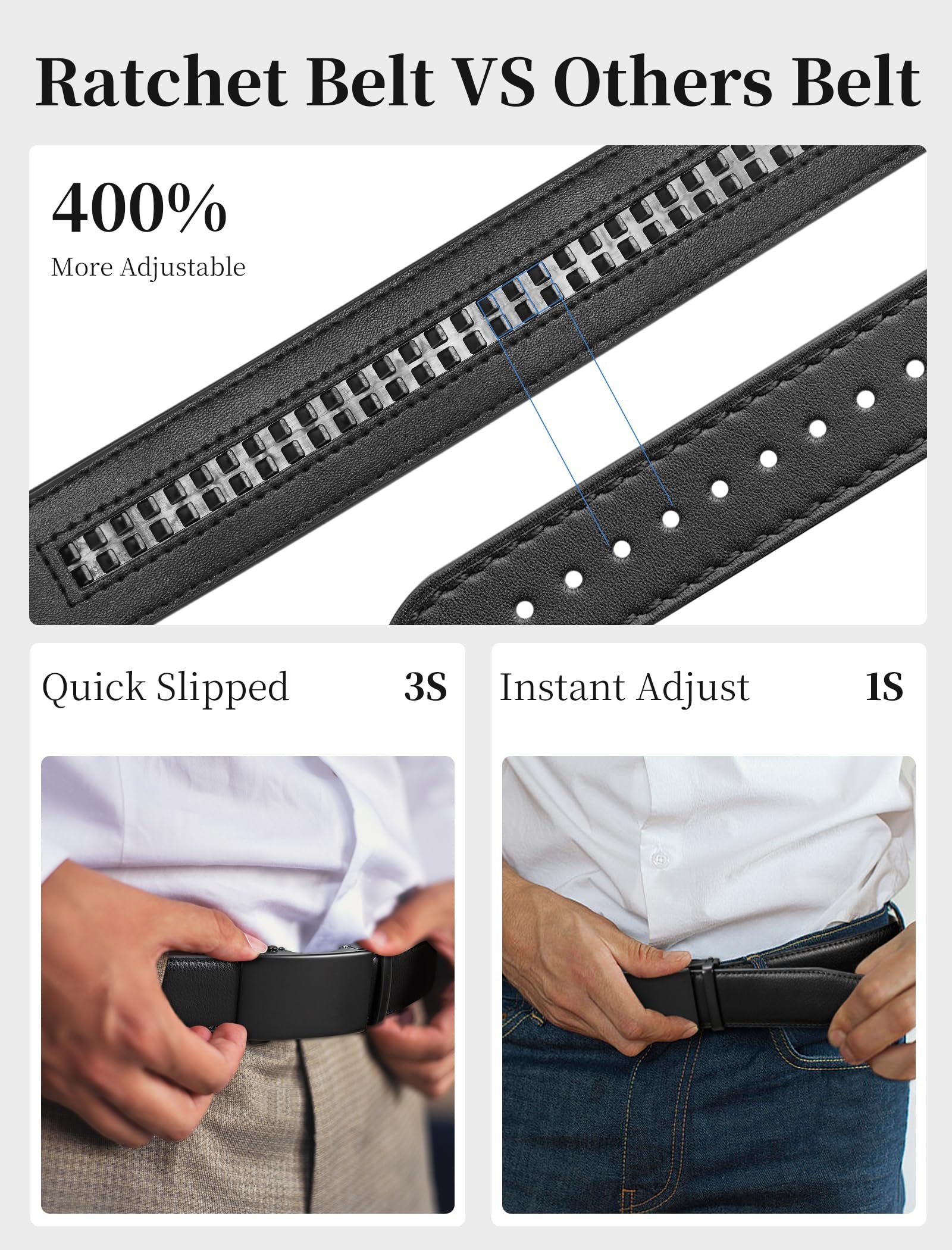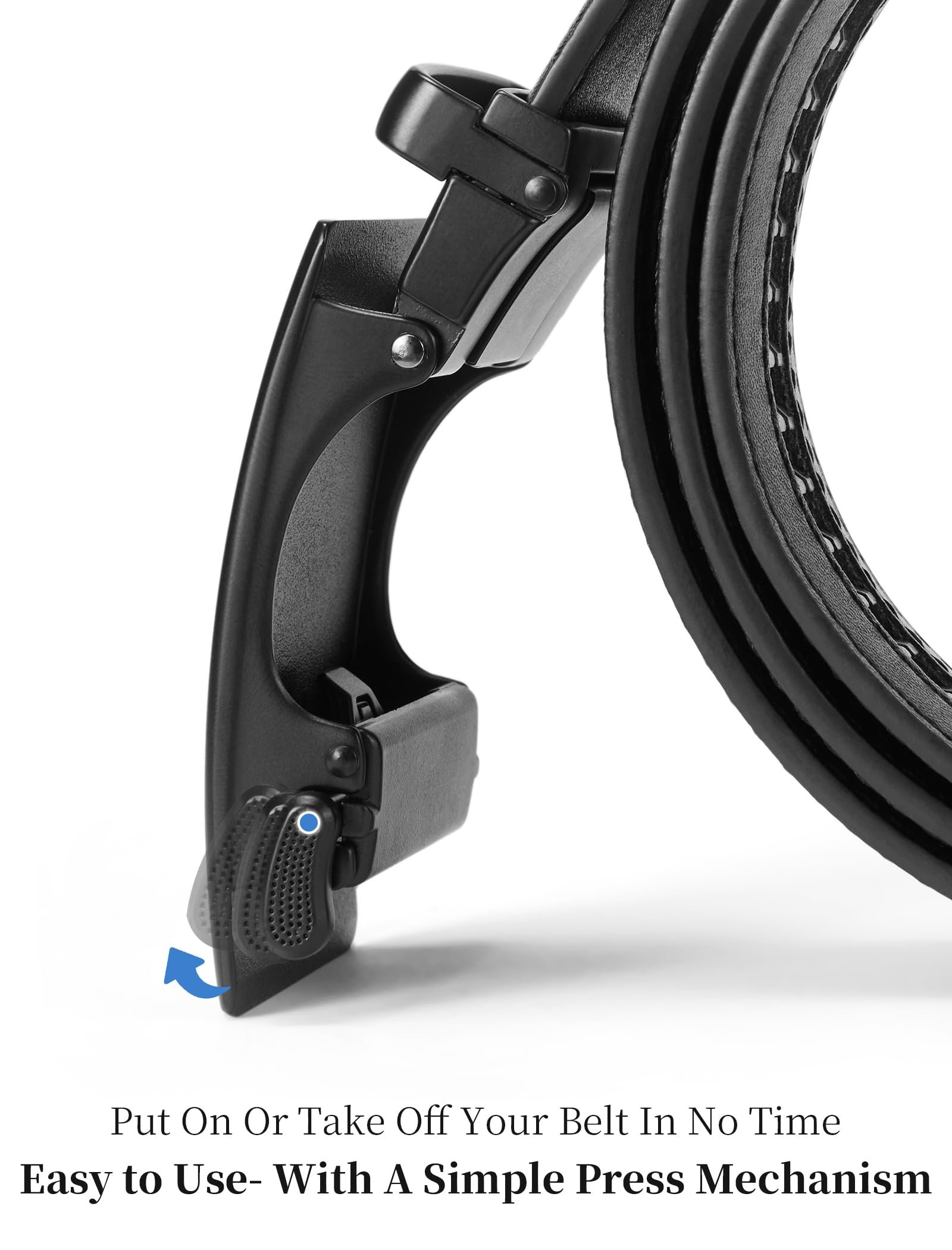 Men's Adjustable Buckle Leather Ratchet Belt, Trim to Fit