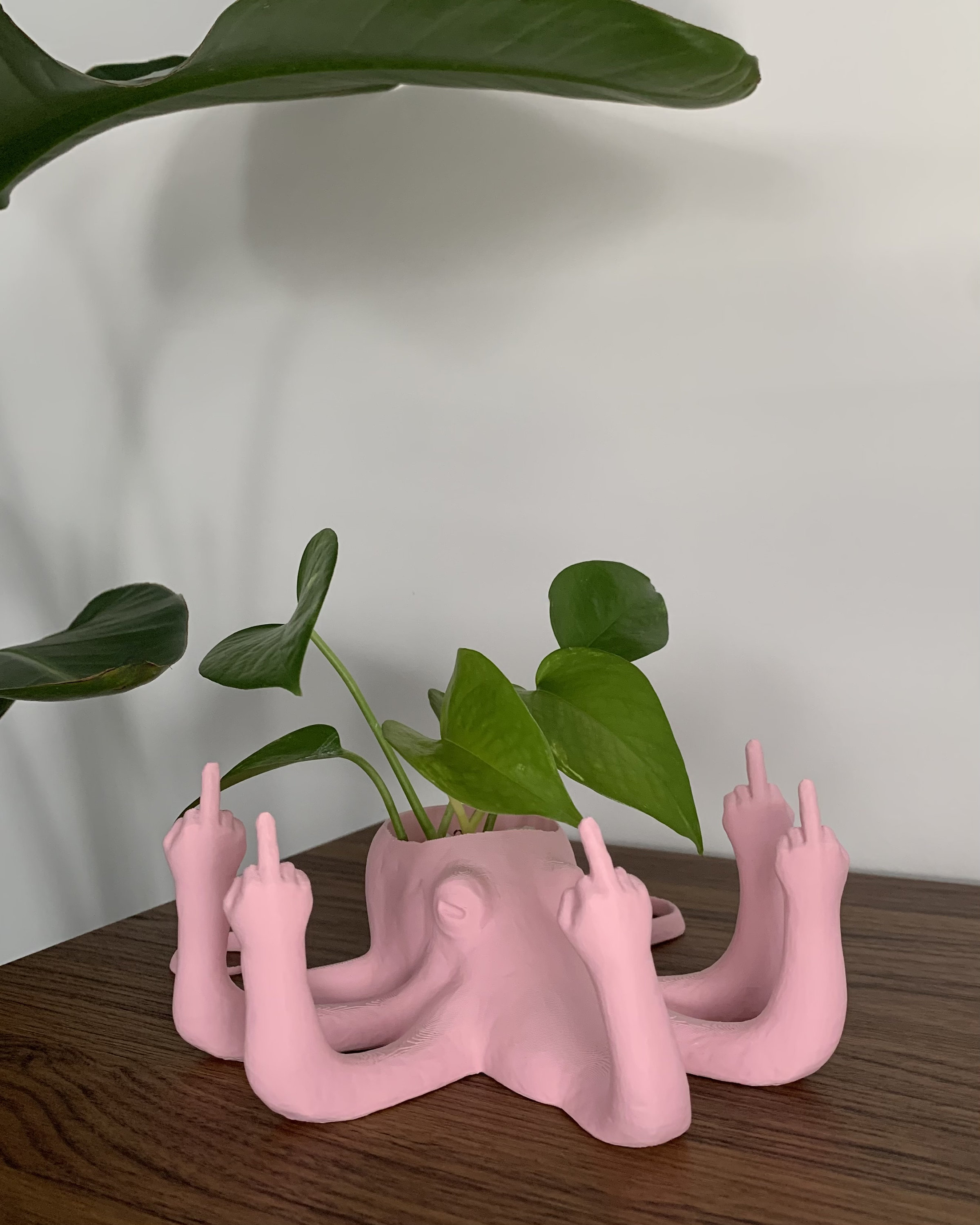 🥰This octopus planter has a subtle design with eight tentacles showing their rebellious side with their middle fingers up!