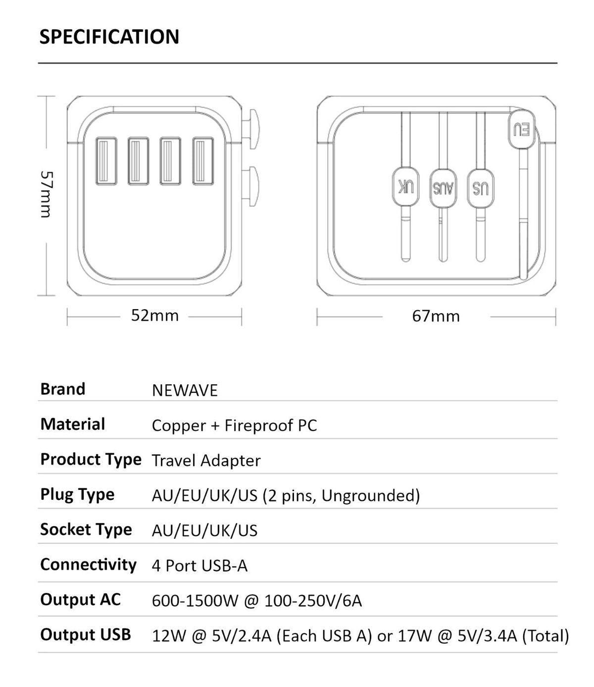 Discover a world without boundaries with our Universal Travel Adapter! Whether you're jet-setting for business, embarking on a global adventure, or simply crossing borders for a short vacation, our adapter ensures you stay connected wherever you are. Designed with the modern traveller in mind, it’s not just an adapter – it’s your global travel companion.