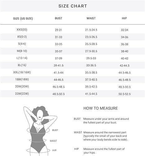 Size: To achieve the perfect fit, please take accurate measurements first and then consult our carefully crafted size chart to suit our swimwear designs. The available sizes are: XS, S, M, L , XL , 2XL ,3XL(18W).