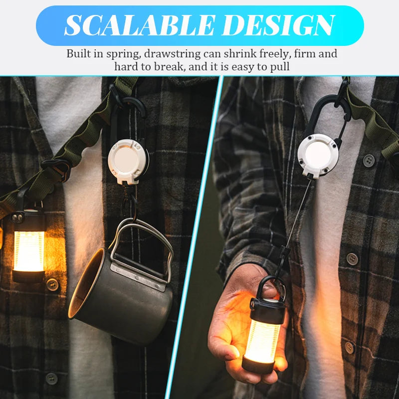 - Sturdy aluminum carabiner with spring-loaded gate quick attach/detach to belt, pocket, strap, or loop