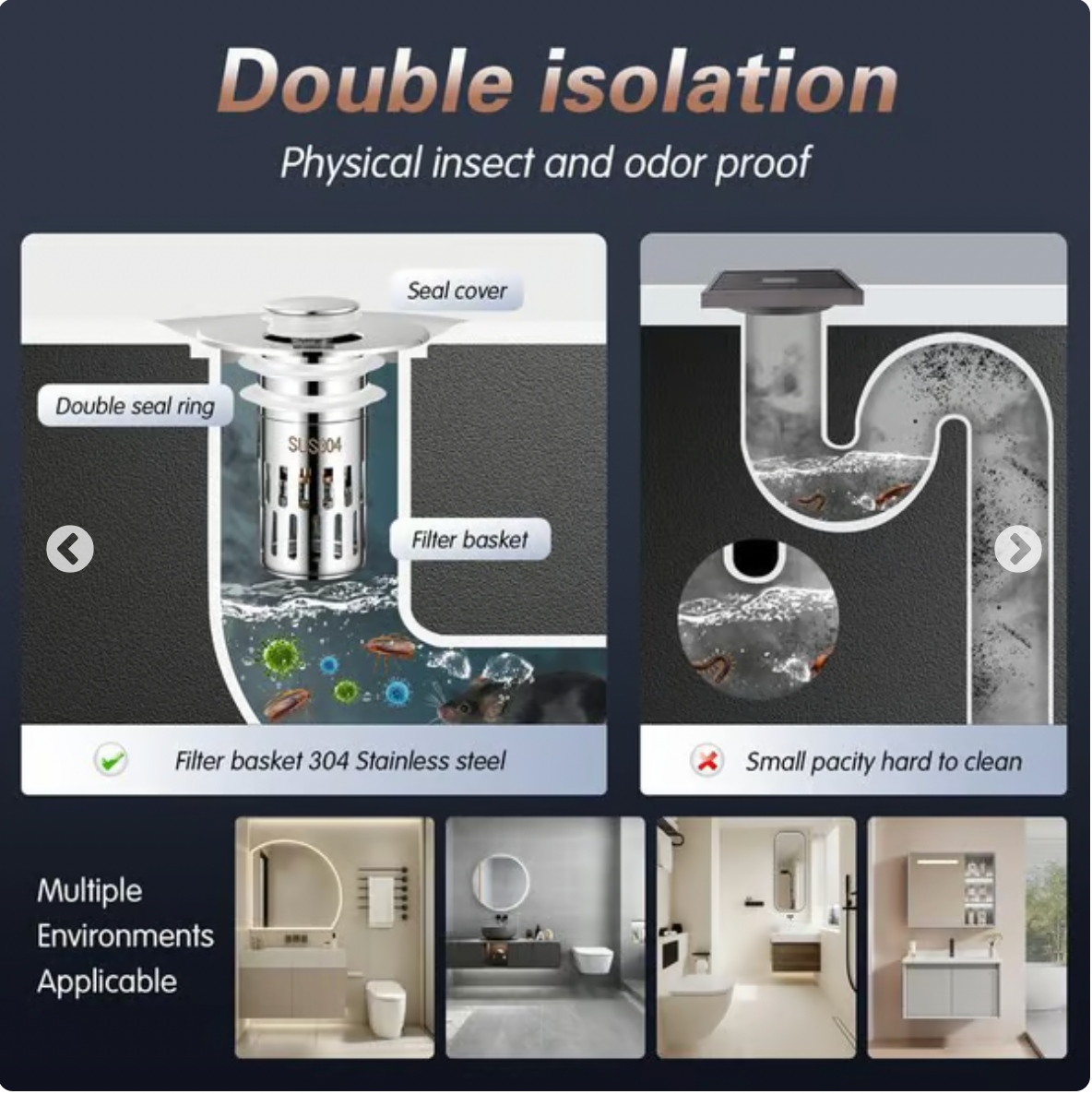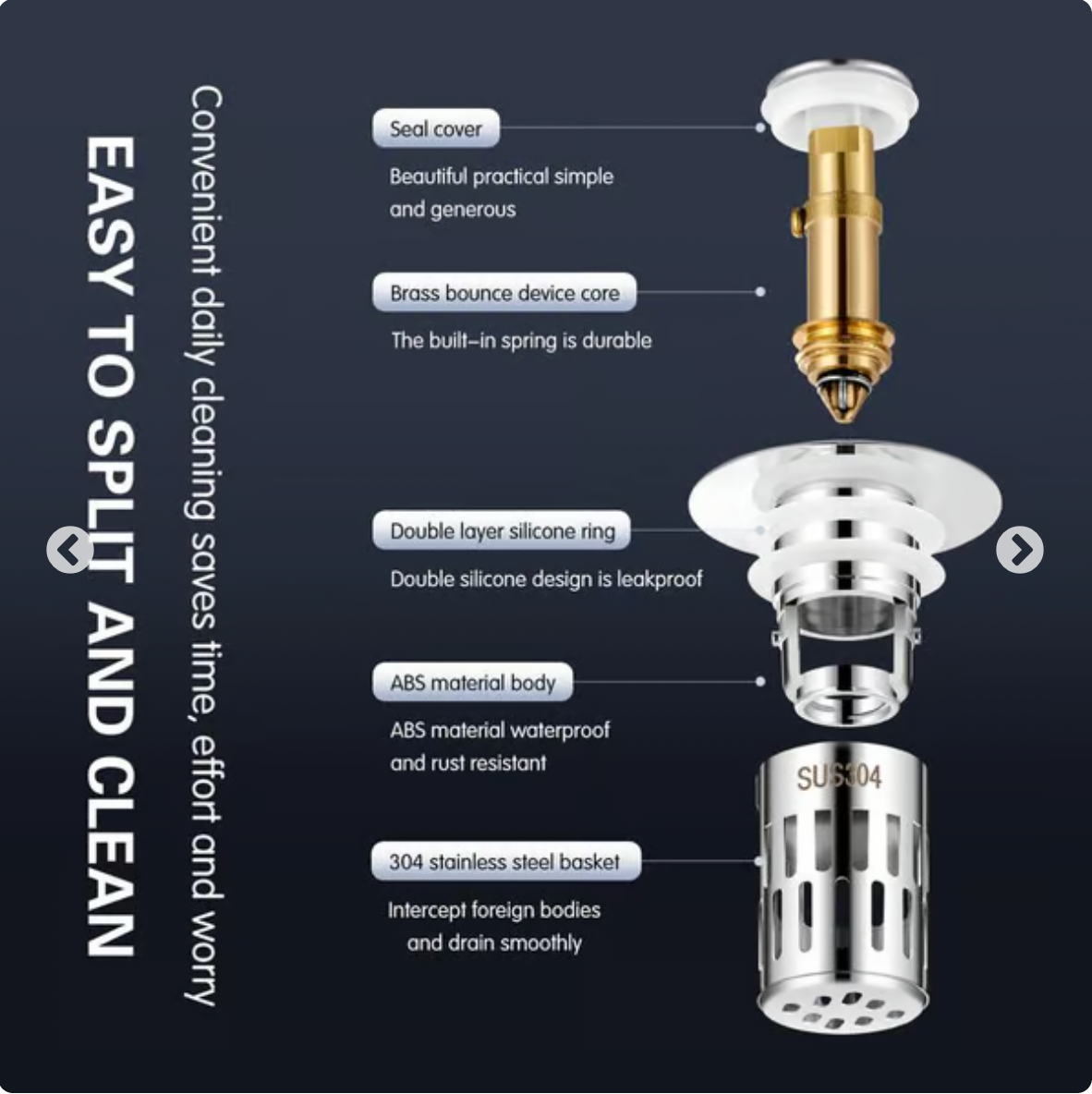 -【Efficient Drainage and Anti-Clog】Get rid of annoyingpipe cleaning! This low-maintenance sink drain filteradopts a smart design and comes with an anti-cloggingbasket strainer, providing you with an effective solutionto keep your bathroom clean and comfortable at alltimes.