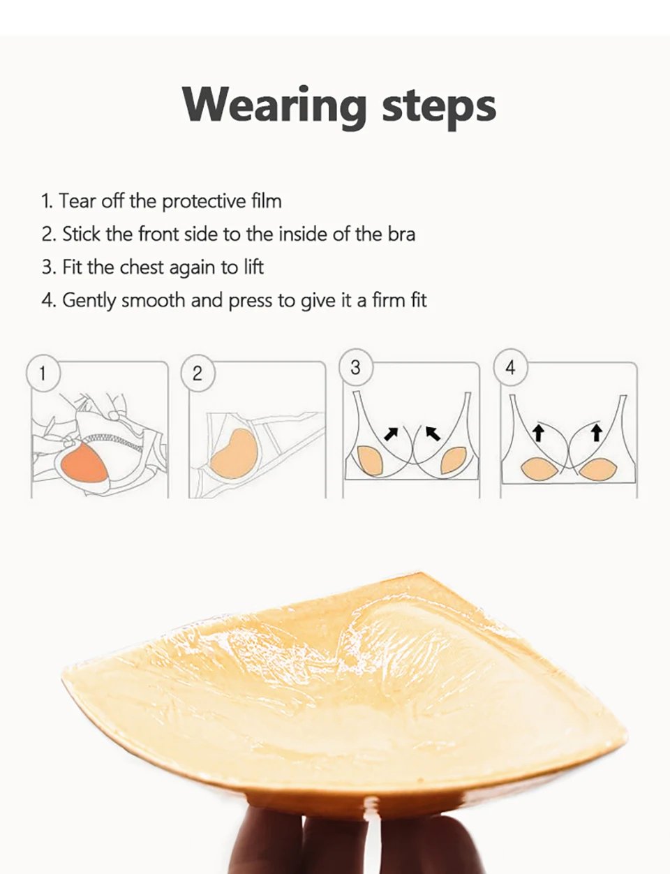 - Sticky bra inserts push up two ways to wear: Sticky inserts push up bra internal design, allowing you to experience amazing lifting or gathering effects.Double sticky bra push up put it upright to effectively lift the breasts and get rid of the worry of sagging breasts.Double side sticky bra put it tilted to effectively gather the breasts and create a deep "V" curve.Bra inserts push up sticky makes you more confident and expands your clothing range.Push up sticky pads allows you to dress freely.