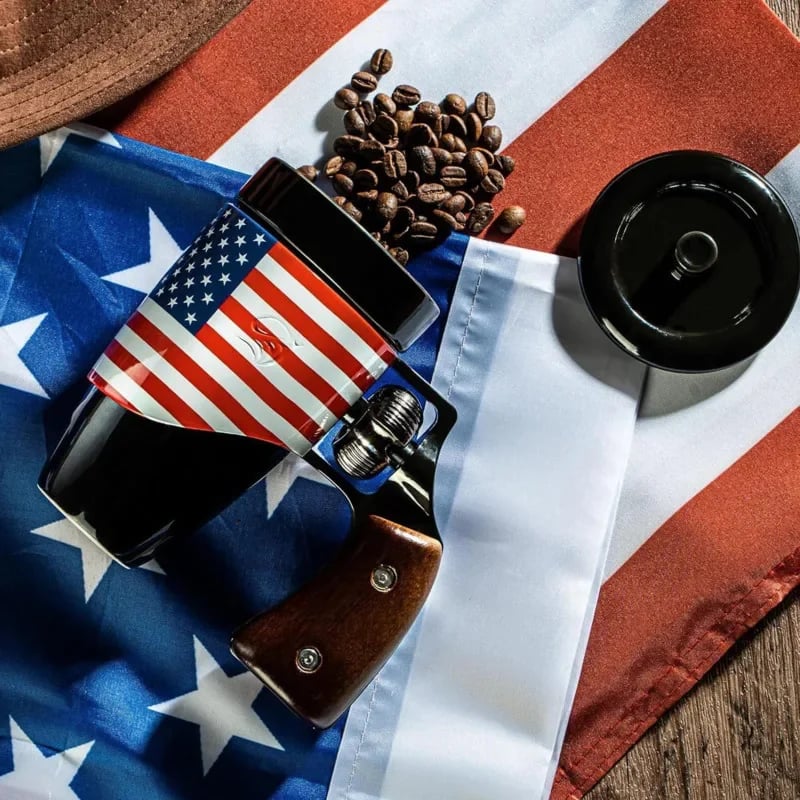 Revolver Coffee Cup with Rotatable Wooden Handle