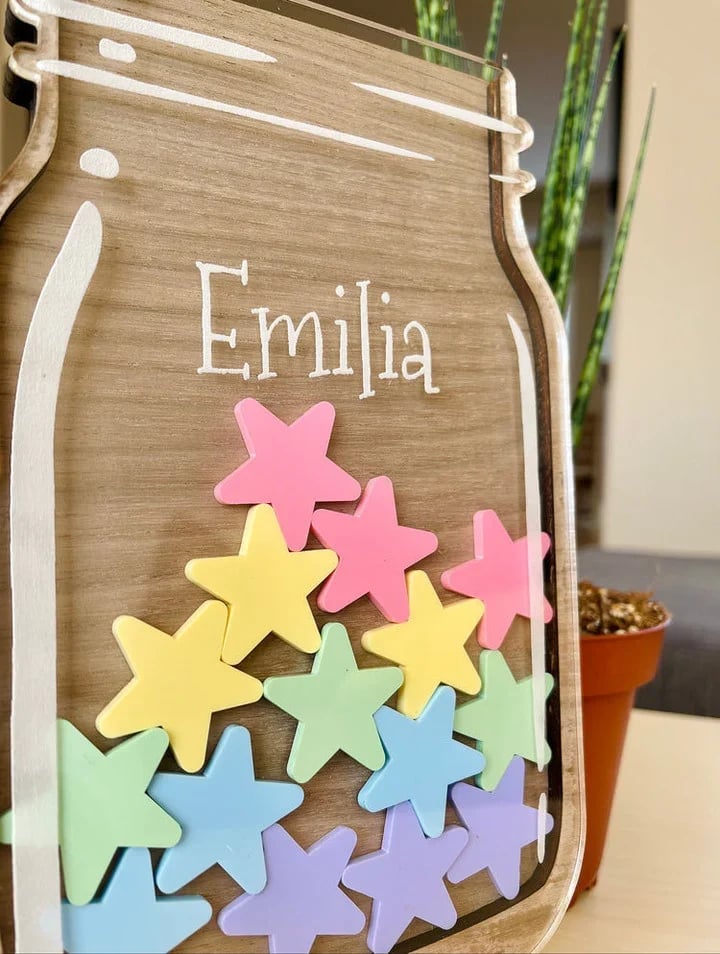 - MAGIC MOTIVATION: Bring fun and joy into your child's everyday tasks with our Reward Jar. With each task completed, they earn a token, getting them one step closer to a thrilling reward. Watch the magic of motivation unfold! Name or text of your choice engraved at no extra cost.