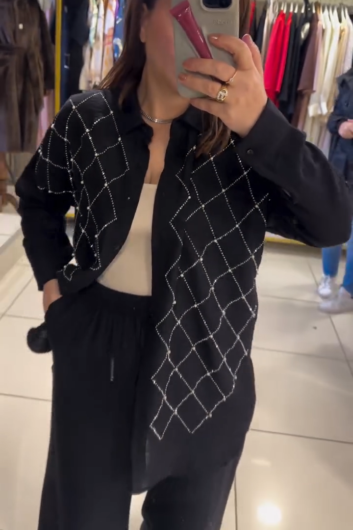 Rhinestone Single-Breasted Shirt