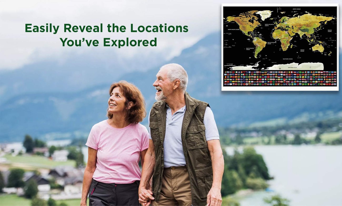 It is printed on high quality thick paper. The base layer is coated with a special gold scratch ink. 😎Scratch off the gold cover to see full color, flags of major cities and places you've visited. The bottom poster is also coated with a special protective coating to prevent damage when the gold foil is scraped off.🌏 ✈️