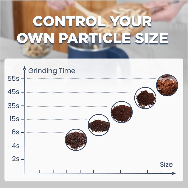 POWERFUL MOTOR: Equipped with a high-performance motor that delivers consistent and efficient grinding in just 30s. Ideal for quickly processing a variety of ingredients, from spices to coffee beans, ensuring a fine and even grind.