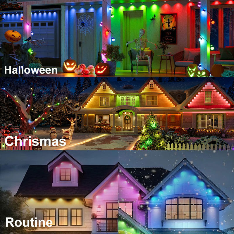Suitable for any occasion to decorate your house, install on eaves, fences or hallways gardens, backyards for a visually appealing home decoration. These permanent outdoor lights are the best choice for parties, Easter, Halloween, Christmas, weddings or play areas.