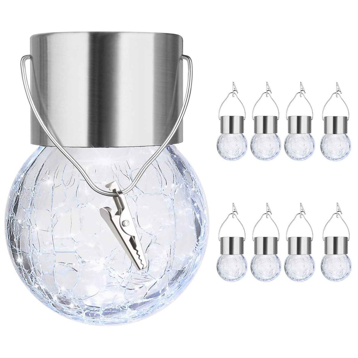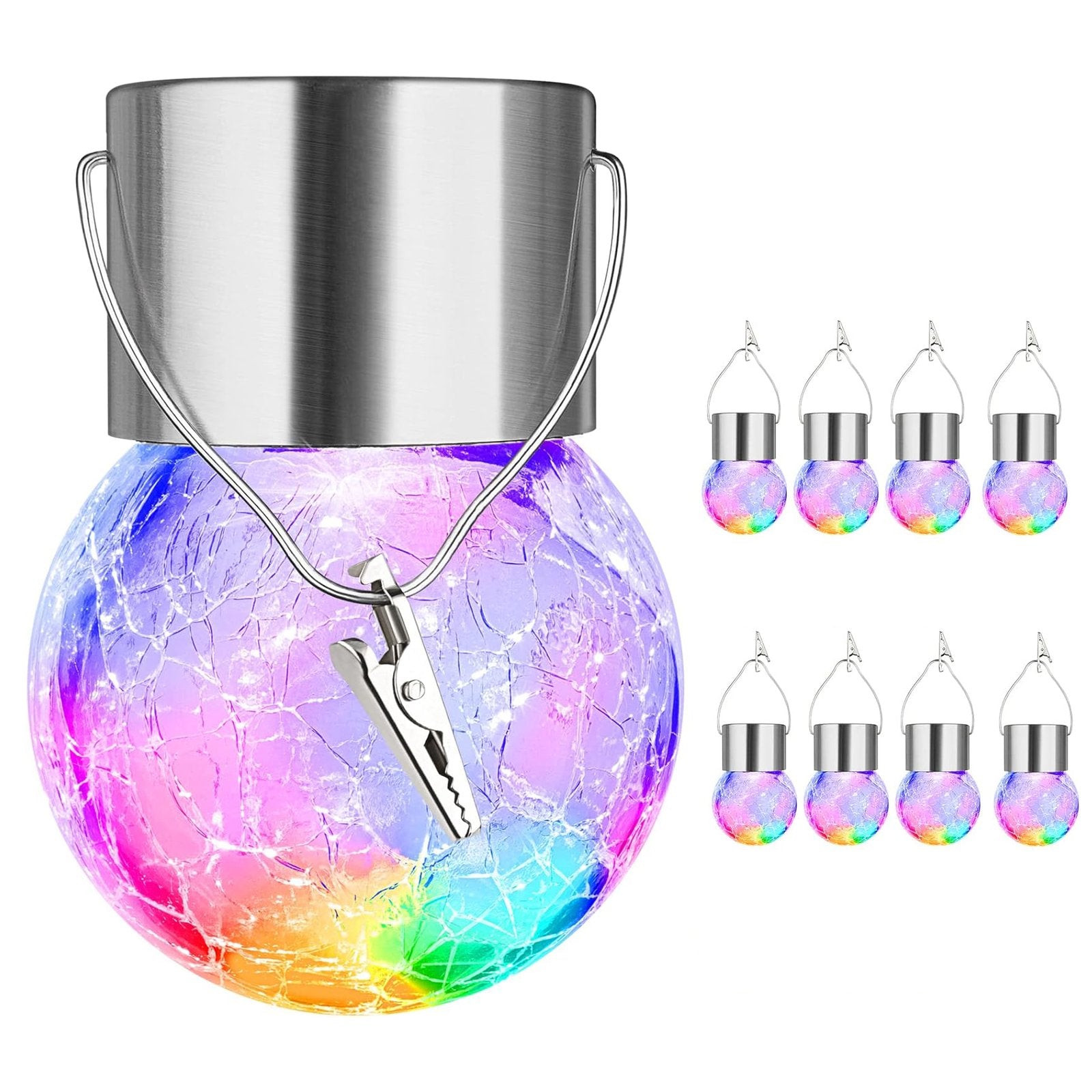 Multicolor Solar Hanging Lights as Perfect Gifts: Outdoor multi-color solar light emits different wonderful color atmosphere, which is a great ideal for indoor and outdoor ornament. Solar-powered lights cracked glass bring a delightful lighting for driveway, walkway, sideway, backyard, wedding, garden, fence, patio, umbrella, balcony, camping, pathway, outside decorations party or daily life.