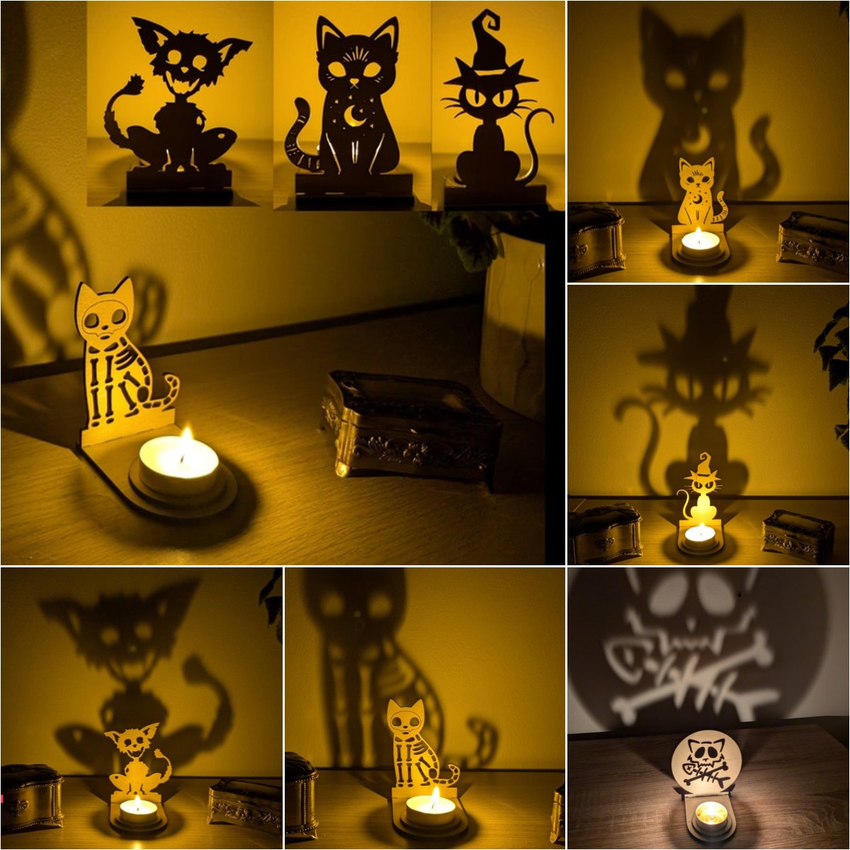 Spooky Skeleton Cat Tealight Holder: Perfect for Halloween Parties! 🎃