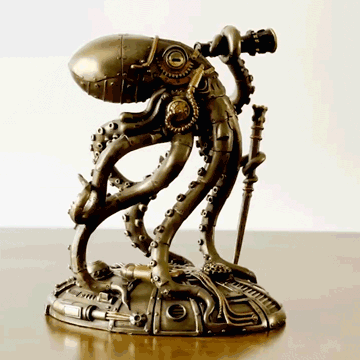 Octopuses are to steampunk what dragons are to fantasy: iconic monsters. With their large, round head and their weirdly shaped eyes, octopuses sort of look steampunk-ish. They look like they are wearing steampunk goggles and a helmet all the time. Moreover, with their long pipe-like tentacles, their bodies are reminiscent of steam machines.
