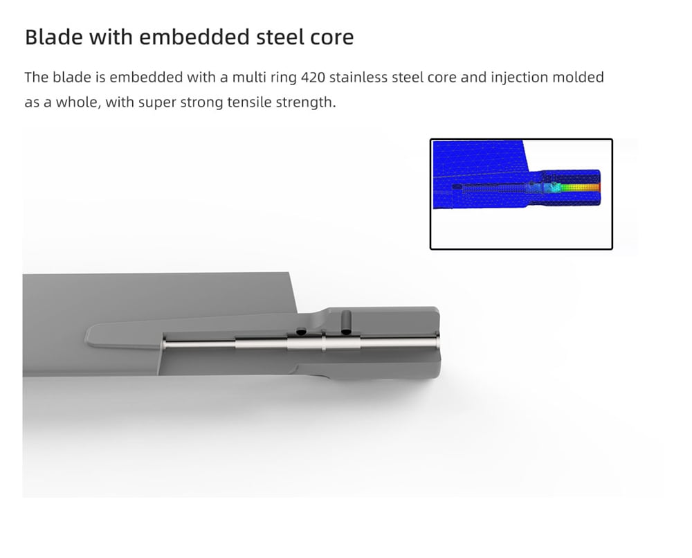 Premium NACA Airfoil Blades: Custom-designed NACA 8-H-12 flat convex blades optimize aerodynamics, complemented by an all-metal gear system and a tool-free belt wheel for quick maintenance