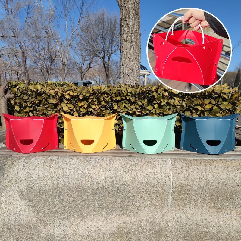 4 Steps to Use: Step 1: Take out the folded stool. Step 2: Hold the handles with both hands and pull outward. Step 3: Hold one side and press down the middle with other hand. Step 4: Sit down and rest. Maybe a little hard to open when first use because of high quality durable PP material, get better later.
