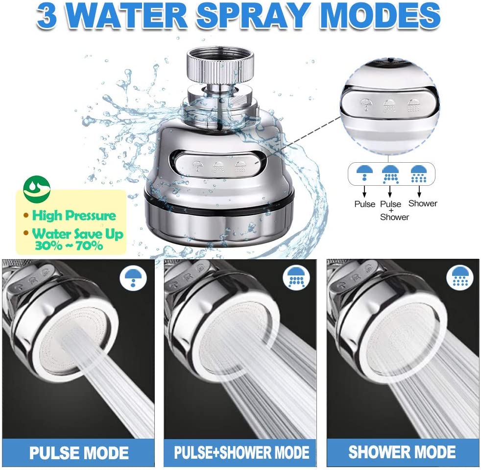 Increase Your Faucet Water Pressure as well as 360 Degrees Multi-angle Cleaning!