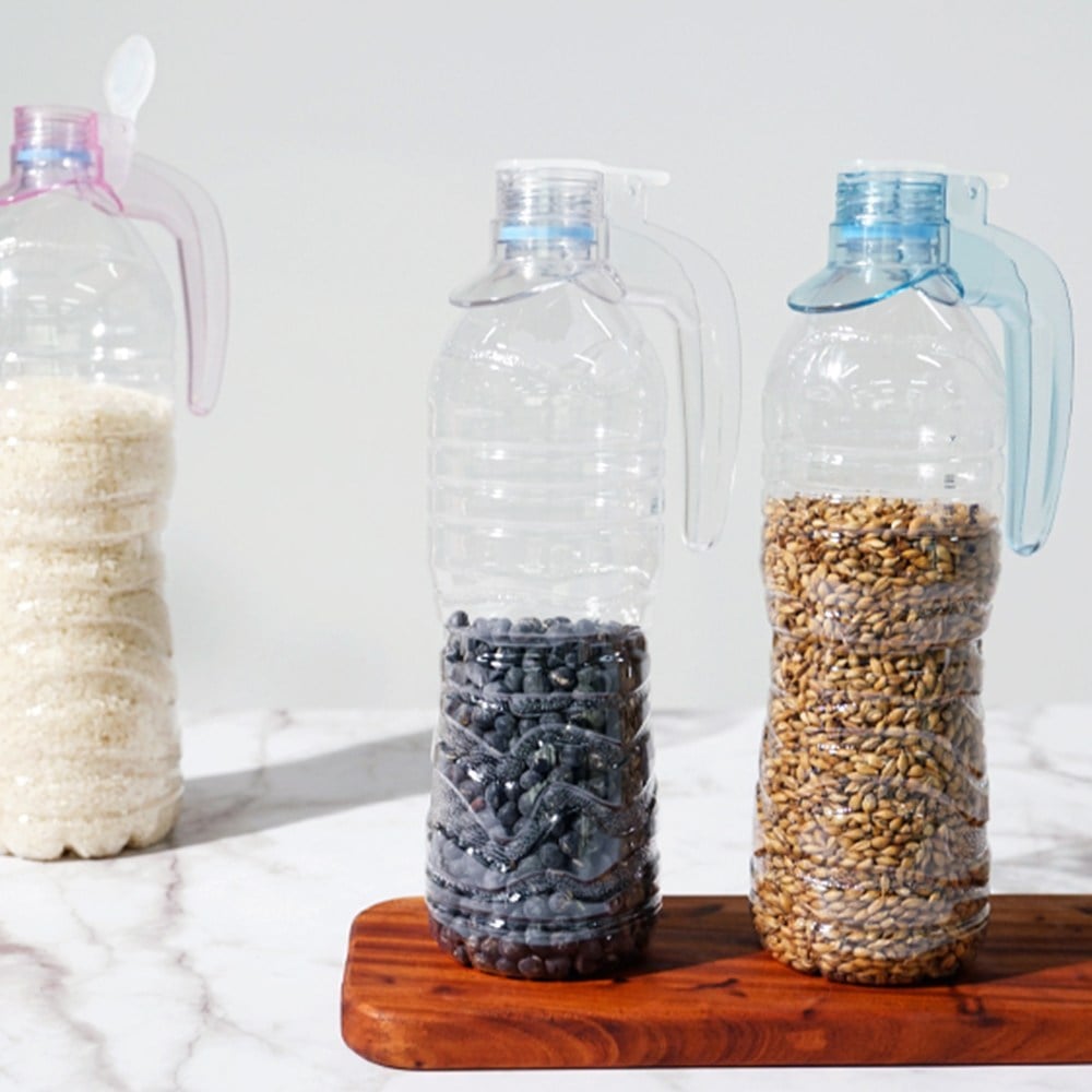 This plastic bottle handle is not limited to just holding bottled water. It is also ideal for storing other food items such as rice, beans, and grains. Its versatility allows you to utilize it for various purposes, making it an incredibly useful tool in your kitchen or pantry. Plus, its standalone functionality means you can use it even without attaching it to a bottle.