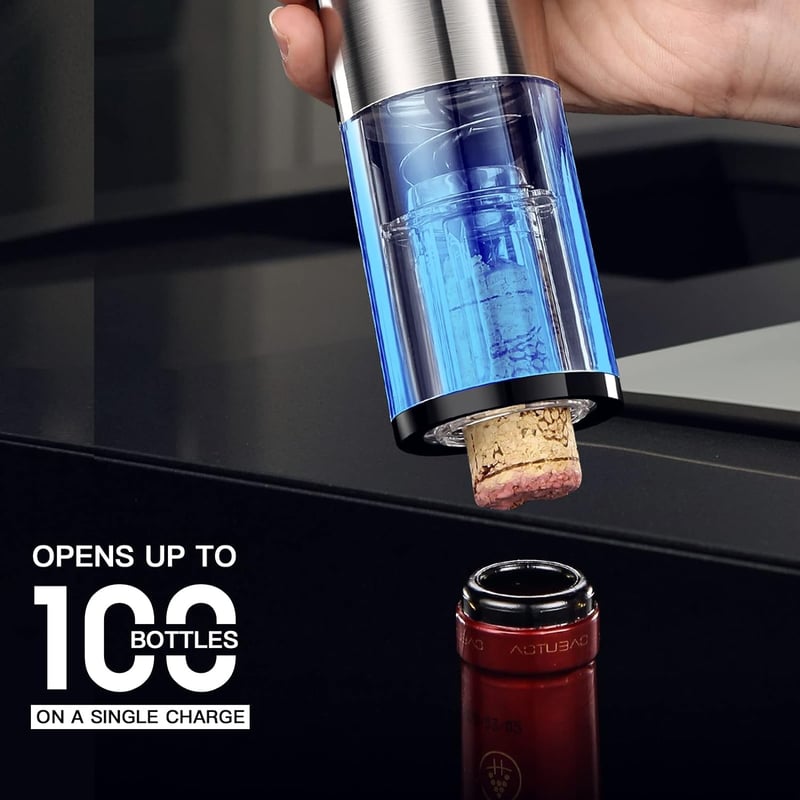 Our wine openers features the smooth surface with good hand feeling. There is blue led indicator light when the cork being drawn up from the bottle. Small size will be more convenient to take it out and save space.