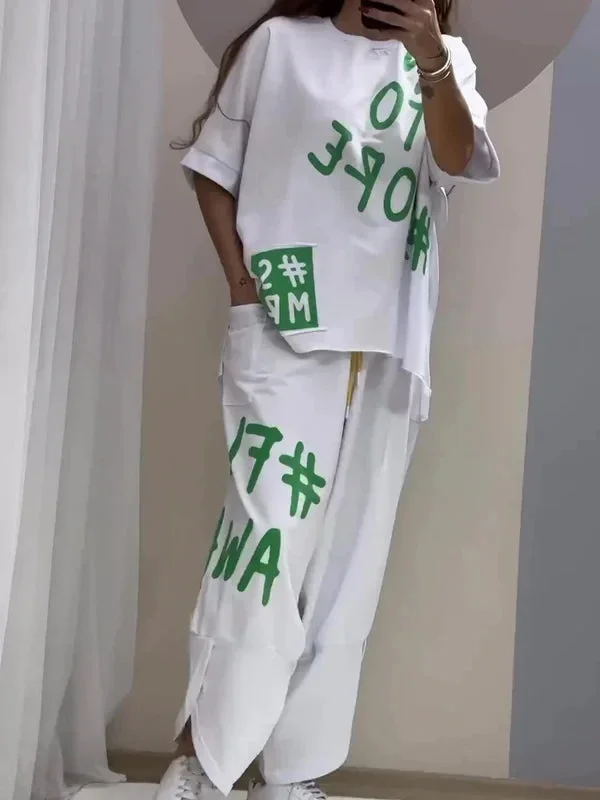 Women’s Casual Loose Fit Two-Piece T-Shirt & Pants Set