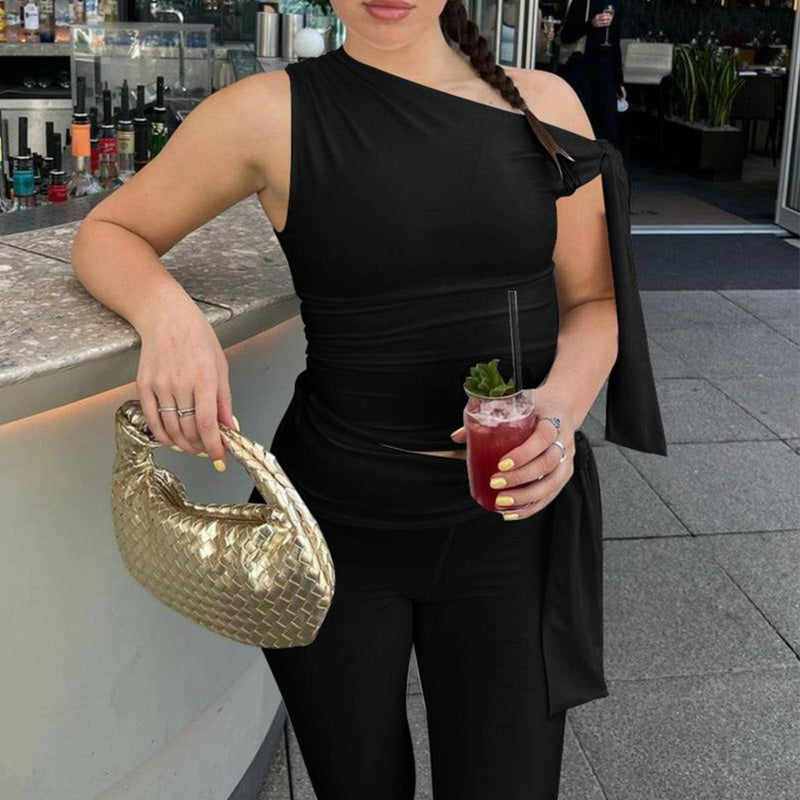 - 1 * Women's Asymmetrical Knot Top & Capri Pants Set