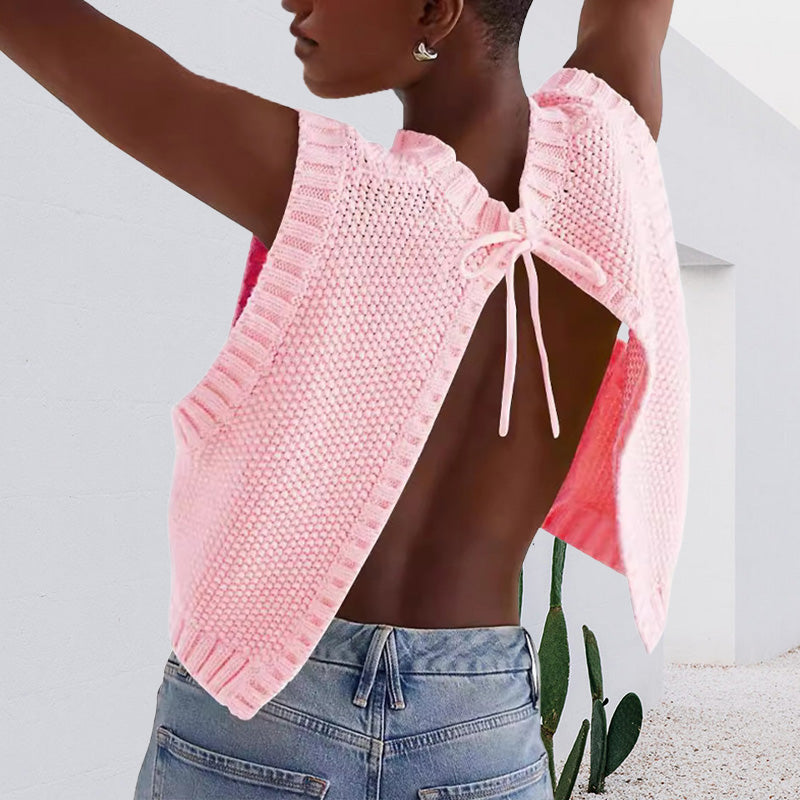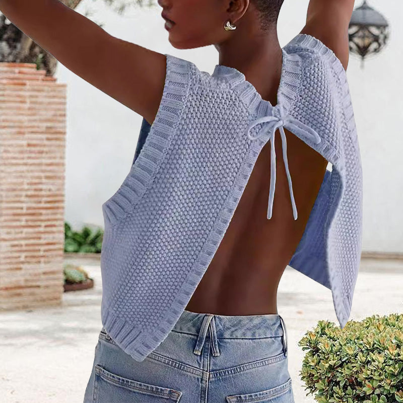 - 1 Ă Women's Solid Split Tie Back Sweater Vest