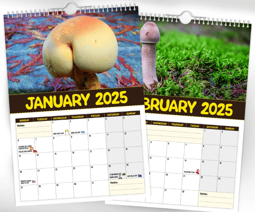 Stuck for the ultimate quirky gift? Pour yourself a gin & tonic, have a seat and look no further! This beautiful 2025 World's Greatest Mushrooms novelty wall calendar will be sure to cheer up a loved one, family member, friend, work colleague or win that special someone over.